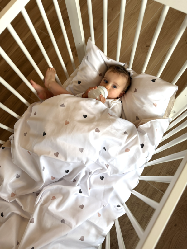 A szívmintás tollpólyákat és ágyneműt fehérrel, rózsaszínnel és szürkével kombinálhatja. A természetes tollnak köszönhetően, amellyel a JiTuli márka dolgozik, a baba hőmérséklete stabil marad, és a tollak hőszabályozó funkciót látnak el – nyáron hűtenek, télen melegen tartanak és megakadályozzák az izzadást. Ideális társ a legforróbb nyári és a leghidegebb téli napokon született babák számára.